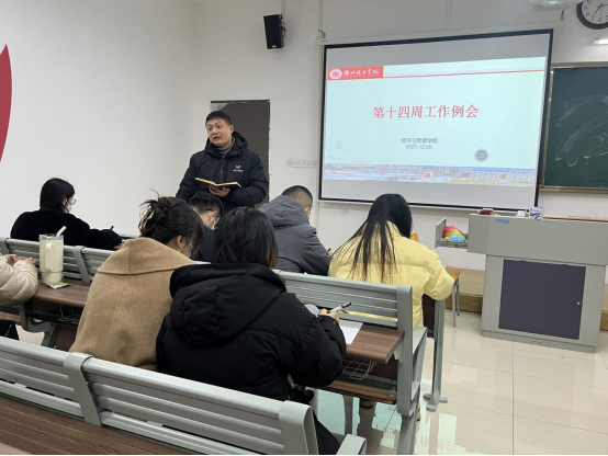 2023年12月06日,经济管理学院在一教219召开第十四周教学工作会议会议由吴玲院长主持,v站体育官网全体教师参加。