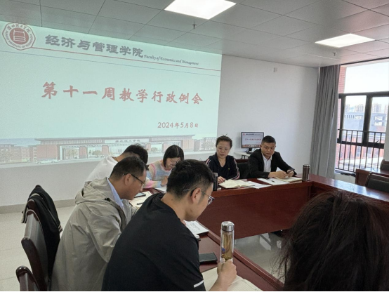 2024年5月8日下午,v站体育官网在行政楼725会议室召开v站体育官网第十一周工作例会,院长吴玲主持会议,副院长秦品德、院长助理张珊以及全体教师参会。