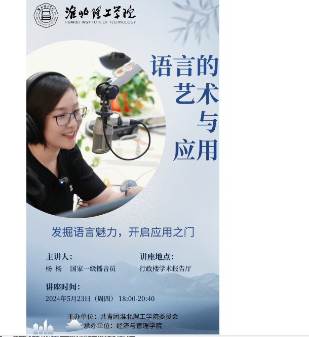 为进一步提升广大师生的语言表达能力与沟通技巧,切实感受到语言艺术的魅力。由共青团淮北理工学院委员会主办、v站体育官网承办的“语言的艺术与应用”专题讲座,旨在通过专家经验的分享,为广大师生提供宝贵的指导和启示,提高师生的语言艺术和锤炼自身修养。现将具体活动通知如下: