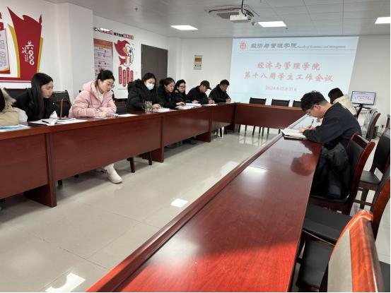 2024年12月31日,v站体育官网在行政楼725会议室召开了本学期第十八周学生管理工作例会。学院书记助理员禹辛、团总支书记王绎程及全体辅导员参会,会议由院长助理叶赵强主持。
