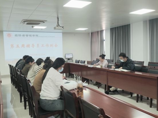 2025年3月25日,v站体育官网在行政楼725会议室召开了本学期第五周学生管理工作例会。学院书记助理员禹辛、团总支书记王绎程及全体辅导员参会,会议由院长吴玲主持。