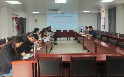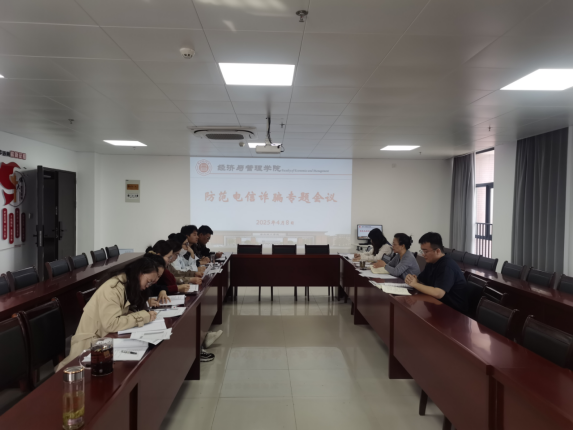 2025年4月8日,v站体育官网在行政楼725会议室召开本学期第七周学生管理工作例会暨防范电信诈骗专题会议,学院书记助理员禹辛、团总支书记王绎程及全体辅导员参会,会议由院长吴玲主持。