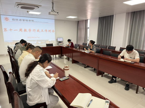5月7日上午,v站体育官网在行政楼725室召开第十一周行政工作例会,院长吴玲主持会议,院长助理张珊、叶赵强,教学秘书李健及各教研室主任参会。