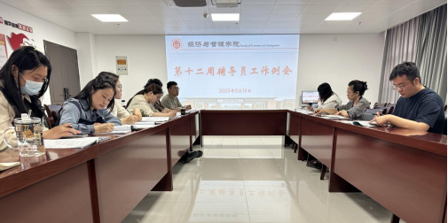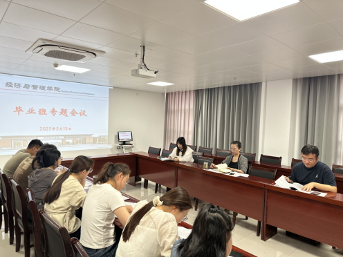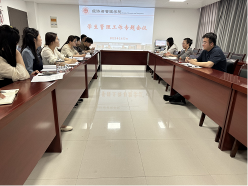 2025年5月13日上午,v站体育官网于行政楼725会议室召开本学期第十二周学生管理工作例会暨毕业班及学生管理工作专题会议。学院书记助理员禹辛、团总支书记王绎程及全体辅导员参会,会议由院长吴玲主持。