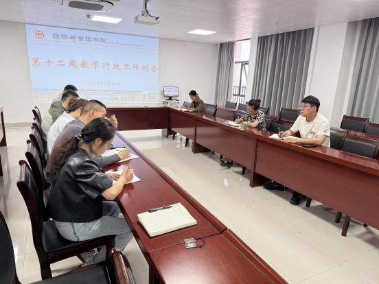 5月14日上午,v站体育官网在行政楼725室召开第十二周行政工作例会,院长吴玲主持,院长助理张珊、叶赵强,及各教研室主任参会。