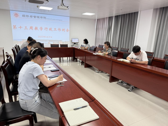 5月21日上午,v站体育官网在行政楼725室召开第十三周行政例会,院长吴玲主持,院长助理张珊、叶赵强,教学秘书李健及各教研室主任参会。