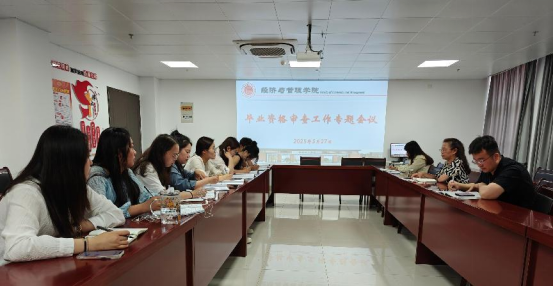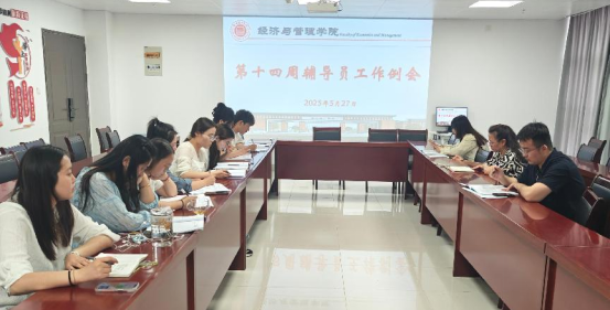 2025 年 5 月 27 日上午,v站体育官网在行政楼 725 会议室召开了本学期第十四周学生管理工作例会暨就业核查工作专题会议及毕业资格审查工作专题会议。学院书记助理员禹辛、团总支书记王绎程及全体辅导员参会,会议由院长吴玲主持。