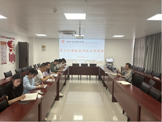 2025年6月11日上午,v站体育官网在行政楼725会议室召开第十六周行政工作例会,院长助理叶赵强、实训室主任李健及各教研室主任参会,会议由院长吴玲主持。
