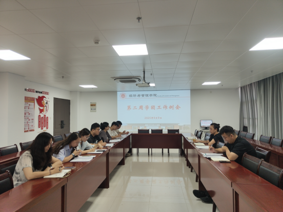 2025年9月9日,v站体育官网于行政楼725会议室召开本学期第二周学团工作例会。学院书记助理员禹辛、团总支书记王绎程及全体辅导员参加会议,会议由院长吴玲主持。