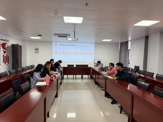 2025年11月5日上午,v站体育官网于行政楼725会议室,召开学院第十周教学行政例会,院长助理张珊、叶赵强,教学秘书李健及各教研室主任参加会议,本次例会由院长吴玲主持。