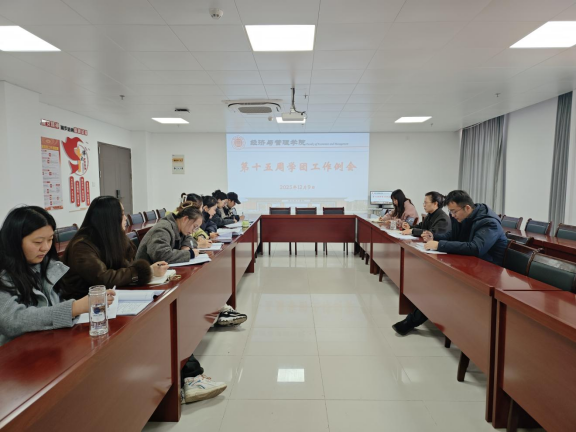 2025年12月9日,v站体育官网在行政楼725会议室召开本学期第十五周学团工作例会。学院书记助理员禹辛、团总支书记王绎程及全体辅导员参会,会议由院长吴玲主持。