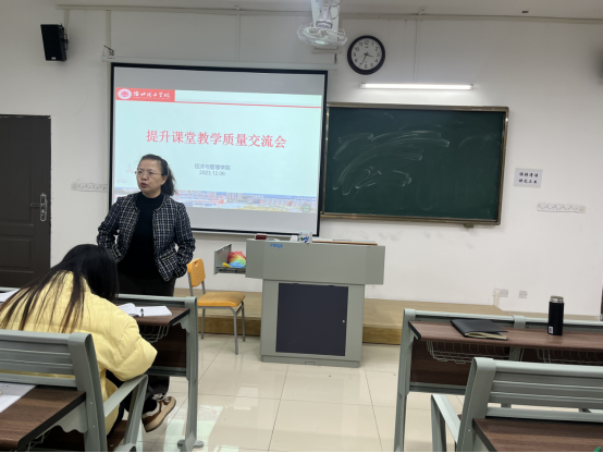 为了进一步提升v站体育官网的课堂教学质量,促进教师间的经验交流和共享,学院于12月6日在一教219举行提升课堂教学质量专题交流会。这次会议旨在搭建一个平台,让教师们分享成功经验、研讨创新方法,共同探讨如何更有效地传授知识,激发学生学习兴趣,以及应对教学挑战。本次交流会由吴玲院长主持,王胜男老师主讲,学院全体教师参加。