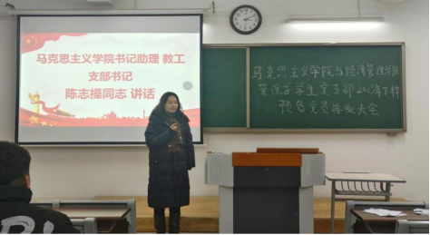 会中,窦惠颖与许诺同志分别代表经济学与管理学全体预备党员向党表决心发言。随后由支部书记带领38名预备党员进行宣誓。