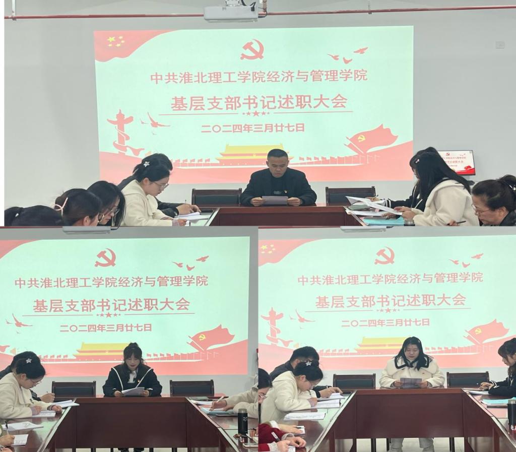 会上,教工支部书记刘路路、经济学学生支部书记员禹辛、管理学学生支部书记石园园分别进行现场述职。各支部书记紧密围绕本支部年度开展工作情况、存在问题及未来期望等方面进行汇报,开展经验分享与学习交流。刘路路表示,要做实做细教师党员发展工作,发挥引领带头作用,强化培训指导,组织新进教师参加党支部的理论学习,接受政治思想的洗礼。员禹辛提到,要促进学生党员的全面学习发展,起到先锋模范带头作用,为进一步增强学风建设起到积极的作用。石园园提到,要进一步强化宗旨意识,加强服务型党组织建设。坚持理论联系实际,以高度的政治责任感、使命感和事业心,充分发挥党员积极性。