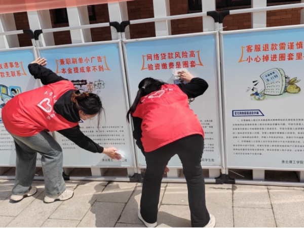 支部党员们在一教门口集合,进行任务分工,以小组为单位认领区域,清扫道路及绿化,清洁卫生死角,擦拭宣传栏和橱窗,并将部分未停放整齐的非机动车搬至停车线内。用实际行动将雷锋精神内化于心、外化于形,用辛勤劳动扮靓美丽校园。