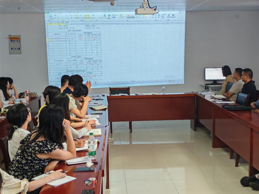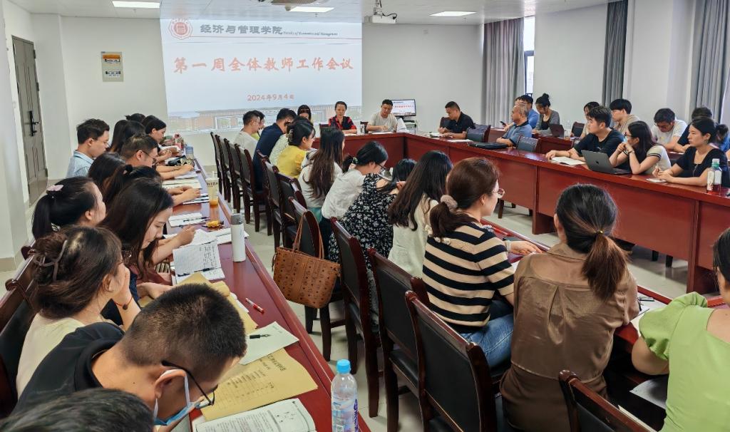 v站体育官网于2024年9月3日下午2:30分,在行政楼725会议室召开2024-2025年度第一学期第一周教学工作例会。会议由院长吴玲主持,副院长秦品德、院长助理张珊以及全体教师参加。会议共分三个阶段有序进行。