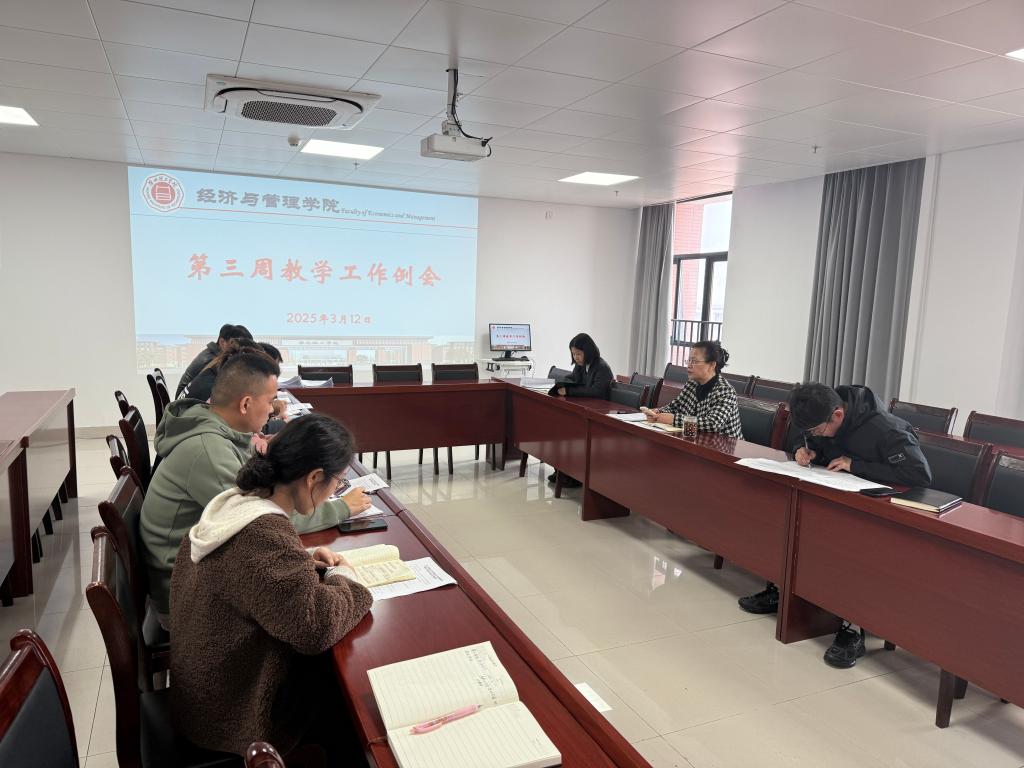 2025年3月12日上午,v站体育官网于行政楼725会议室召开教研室主任会议暨专业建设研讨会,旨在深化专业内涵,提高人才培养质量。院长助理张珊、叶赵强,实训室主任李建和各教研室主任参会,共商专业发展,会议由吴玲院长主持。