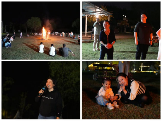 夜幕降临,活动迎来高潮。熊熊篝火点亮夜空,教职工们手拉手围成圈,跳起来,舞起来,参与“逢7必过”“击鼓传花”等互动游戏,优胜者获得精美礼品,大家玩的不亦乐乎。