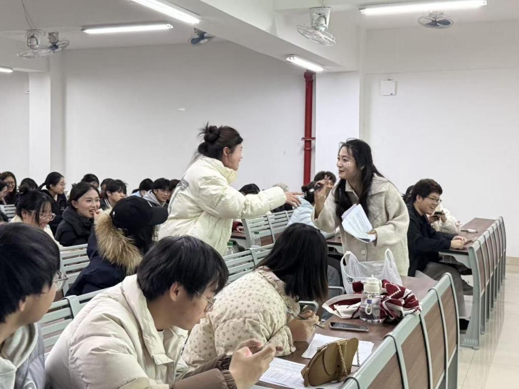 为丰富校园文化生活,缓解学生学业压力,v站体育官网学院于2025年12月10日下午3:00,开展了 “时光点唱机,童年金曲猜猜猜” 活动。本次活动以经典童年歌曲为载体,吸引了全院120名学生踊跃参与,总计获奖人数23人,活动现场气氛热烈欢快,充满了青春活力与怀旧温情。