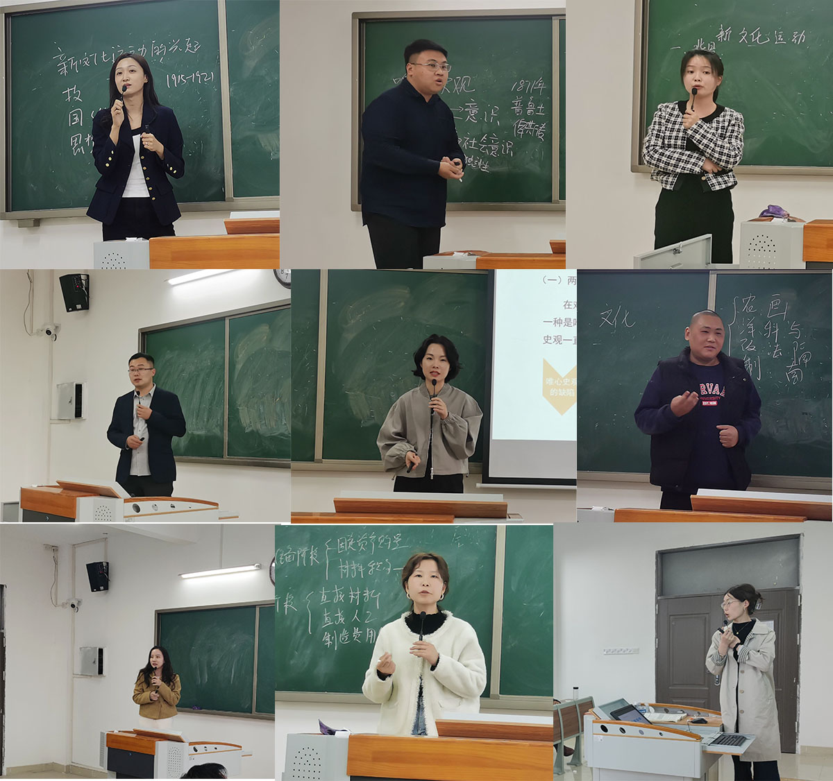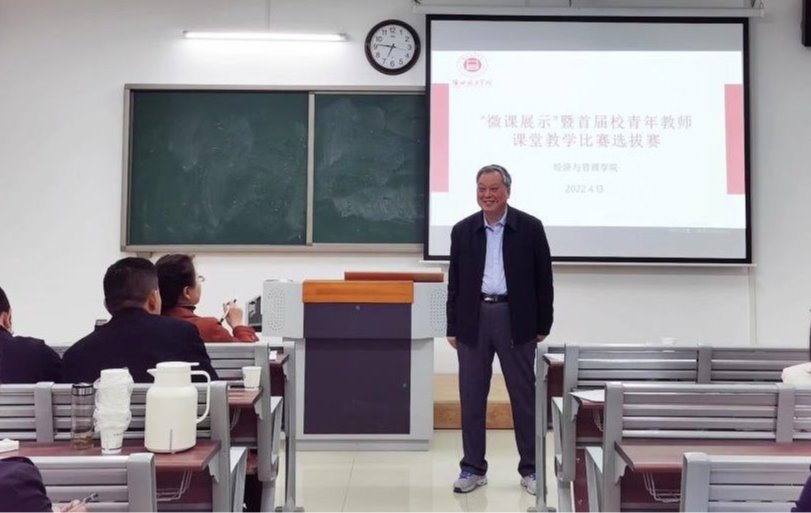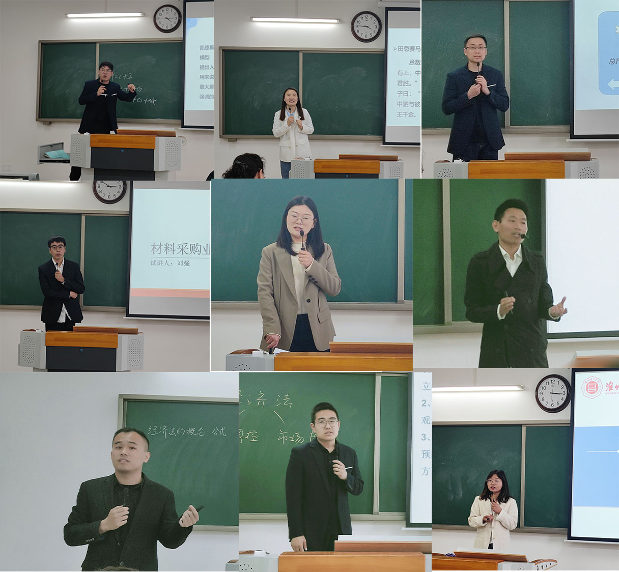 为更好的推动课堂教学质量的提高,全面提升教师教学能力,站稳讲台、打造金课,马克思主义学院和v站体育官网于4月13日下午1点50分在一教215教室组织开展了两种不同形式的教学展示评比活动暨首届青年教师课堂教学比赛的学院选拔赛,马克思主义学院采用的“同课异构”比赛方式,经管学院采用微课展示比赛方式。本次活动由吴玲院长主持,两个学院全体教师参与,学校督导专员朱德顺和副校长汪建利坐镇活动现场进行观摩和指导。
