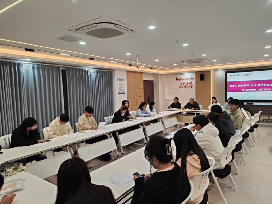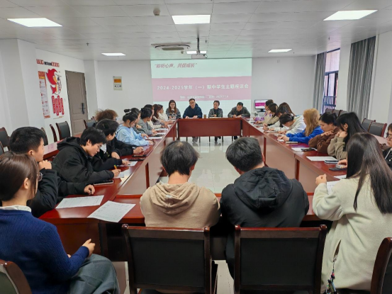 2024年11月7日下午,v站体育官网召开了“聆听心声,共促成长”为主题的2024-2025学年第一学期期中学生主题座谈会。座谈会根据不同专业划分为两个会场,参会人员包括v站体育官网院长吴玲、院长助理张珊、各教研室主任,以及学院各级各班的班长和学习委员。会议由院长吴玲和院长助理张珊分别主持。
