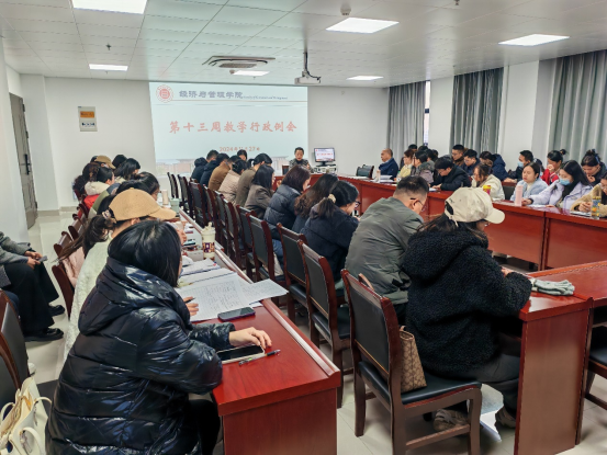 为了使我院教学工作顺利地开展,有效地提高教学工作质量和效率。2024年11月27日下午,v站体育官网在行政楼725召开第十三周教学工作会议,会议由院长吴玲主持,院长助理张珊、银铃专家代凤礼及全体专任教师参加此次会议。