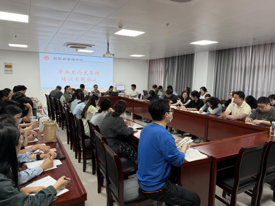 为保证2025届毕业论文答辩工作质量,5月14日下午,我院在725会议室召开2025届毕业论文答辩专题培训会,围绕毕业论文指导、评阅等环节的材料规范和答辩工作开展专题培训。院长助理张珊、叶赵强及全体教师参加此次会议,本次会议由院长吴玲主持。