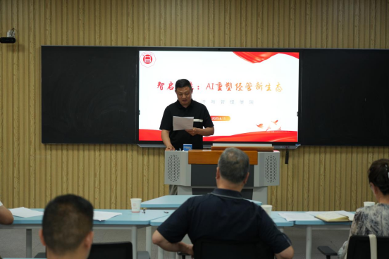 2024年底AI浪潮席卷全球,教育领域迎来数字化变革,从知识传递到课堂生态,从教学工具到教学逻辑都要重塑。2025年6月11日,学校在一教210举办“AI赋能教学”大赛,11位经管教师登台展示,探索AI技术与教学融合,重塑经管教学新业态。副校长汪建利、教务处副处长秦品德、发展规划处处长朱学道、经管学院全体教师参加活动。