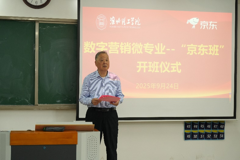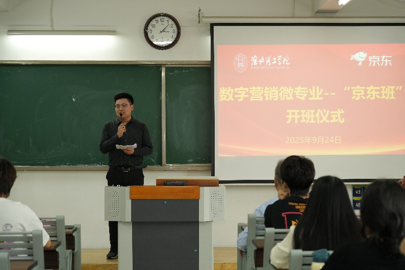 2025年9月24日,淮北理工学院首届数字营销微专业“京东班”开班仪式在二教323隆重举办。京东集团产业合作部大区负责人杨阳、淮北理工学院副校长汪建利、校教务处副处长秦品德,首届“京东班”的全体同学、v站体育官网的领导、“京东班”的班主任和任课教师参加了开班仪式,v站体育官网院长吴玲主持活动。