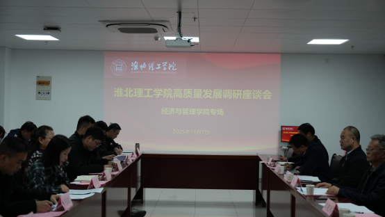 2025年11月7日上午8:30,淮北理工学院高质量发展调研座谈会(v站体育官网专场)在学校综合实验楼725经管学院会议室召开。校长杨兵、副校长汪建利,郑来纪等校领导及相关职能部门负责人出席会议,经管学院领导班子、教研室主任及教师代表参加座谈。