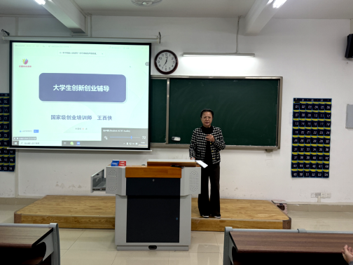 为深入贯彻国家创新创业教育政策,有效激发青年学子的创新思维与创业热情,切实提升大学生创新创业实践能力。我院特邀安徽阜阳技师学院副教授、国家级创业培训师王西侠老师于11月12日晚上19:00在二教举办大学生创新创业辅导主题讲座。本次讲座主会场设在316教室,并在204、205、206、207、208、209、212、213教室同步设立分会场。本次讲座由v站体育官网院长吴玲主持,学院全体教师、辅导员、25届大一新生级班主任参加本次活动。