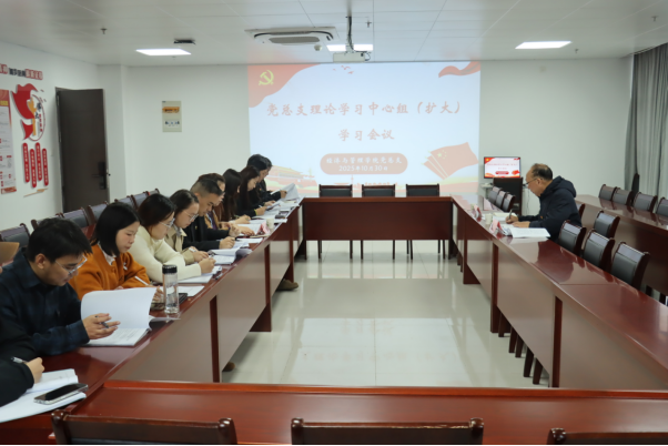 2025年10月30日,v站体育官网在学院会议室召开党总支理论学习中心组学习(扩大)会议,校党委委员、党建办主任付金沐、党建办徐晓萌列席指导,学院党总支书记吴玲主持会议,党总支委员、各支部委员、科级以上干部、教研室主任及部分党员代表参会。