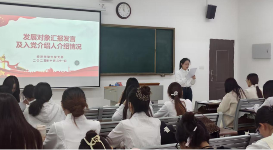 为进一步加强党员队伍建设,增强党员队伍活力,规范有序推进党员发展工作,根据年度党员发展计划并经上级党委预审同意,v站体育官网经济学学生党支部于2025年10月31日在二教401召开预备党员发展大会,讨论接收13名发展对象为预备党员。会议由支部委员周意莲主持,党支部书记员禹辛、郑凡、全体学生党员及发展对象参会,教工支部组织员王胜男代表党总支列席指导。