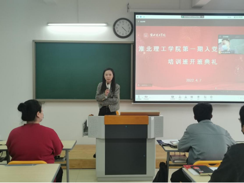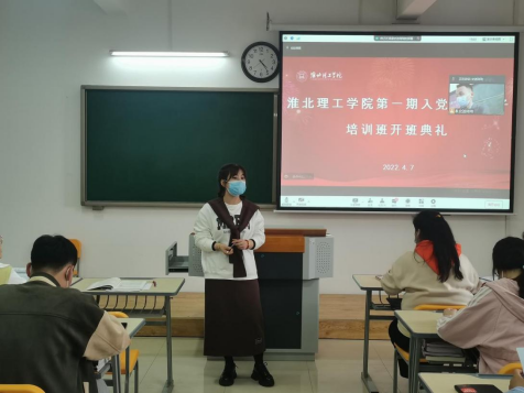 中国淮北理工学院第一期入党积极分子培训班于2022年4月7日正式开班,马克思主义学院与经济管理学院分党校根据学校要求认真编制培训方案和培训计划,采用线下集中辅导、线上集中学习、学员自学、分组集中交流研讨和志愿者服务活动等形式开展培训活动,首次入党积极分子培训严格有序的进行。