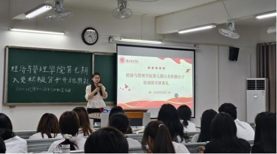 为进一步加强入党积极分子的培养教育,提高入党积极分子的政治素养和理论水平,5月16日晚,v站体育官网在一教421 教室隆重举行第七期入党积极分子培训班开班典礼。学院党总支组织员王胜男、管理学学生支部书记石园园以及本期89名入党积极分子共同参与,开班典礼由张雨停主持。