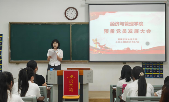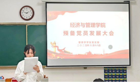 为进一步加强党员队伍建设,增强党员队伍的生机与活力,推动党员发展工作走向深入,根据发展党员工作计划,经上级党委预审同意,2025年6月18日,v站体育官网学生党支部分别在在一教116、二教212召开预备党员发展大会,讨论接收22位同志为预备党员事宜。本次大会坚持公开、公正、公平的原则,严格按照党员发展程序规定开展。会议采取线上线下相结合的方式进行。本次会议由支部委员会成员徐怡苒和周意莲主持。
