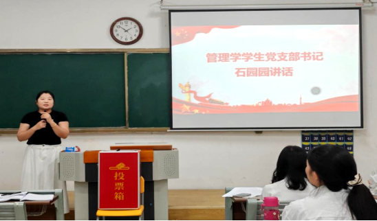 会议严格按照党组织接收预备党员的程序进行。会议伊始,支部委员徐怡苒和周意莲介绍了本次大会的主要议程及参会人员情况。本次大会管理学支部由v站体育官网教职工支部书记刘路路同志、经济学支部由v站体育官网组织员、宣传委员王胜男同志分别代表总支参加本次支部整个活动。刘路路老师在讲话中强调党员发展工作是党的建设的重要组成部分,关乎党的事业薪火相传,对新党员寄予厚望,鼓励大家坚定理想信念,牢记党员身份,在学习、工作和生活中发挥先锋模范作用。