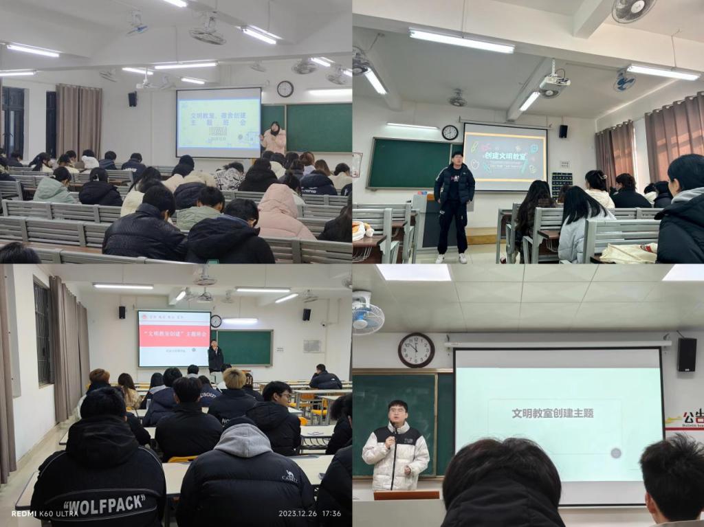 验收评估树立标杆(12月23日-12月29日):经学院学生会全体成员及各班级学生的共同努力下,严格对照标准进行日检查和日通告,以检查的原始资料和数据为依据,严格按照标准和程序进行评比,最终评选出v站体育官网两个“文明教室”班级:2023级市场营销班,2023级市场营销对口1班。