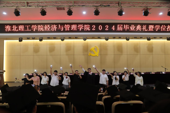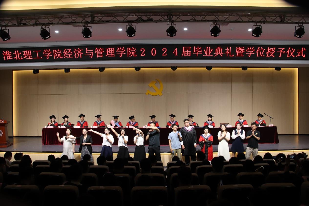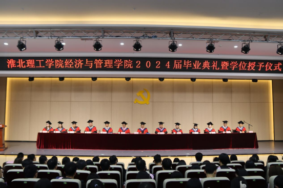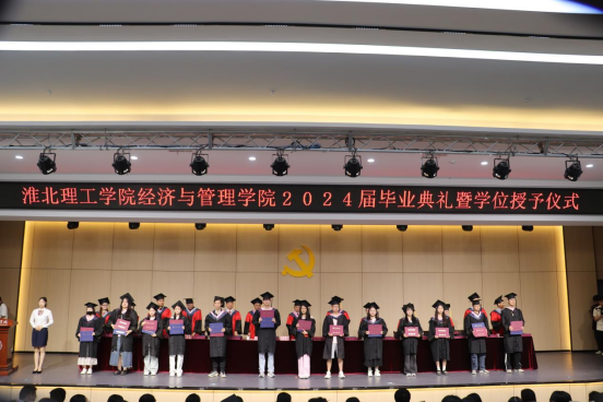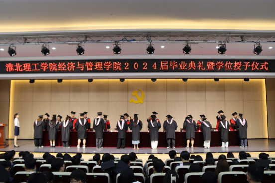 v站体育官网副院长秦品德宣读2024届《淮北理工学院本科生学士学位授予决定》,恭贺学院358名同学顺利毕业获得学士学位。