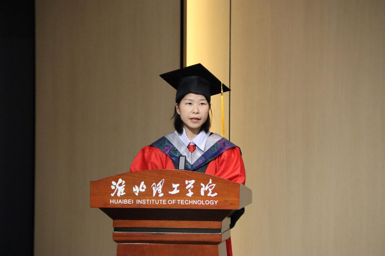 市场营销专业梁诗雨同学代表毕业生发言,回忆了校园生活的丰富多彩,重温了入学以来个人的成长历程,表达了对母校、师长、同学和父母的深深感恩情。