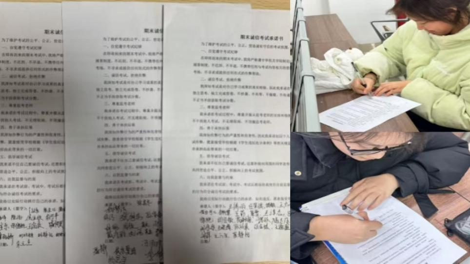 在班会中,对学生手册条款结合案例进行解读,深入浅出地阐释了诚信考试的重要性。此外,强调了同学们应认真准备考试。明确指出作弊行为严重违反学术规范,对学生的学业发展构成重大危害。并对作弊行为对个人及班级产生的负面影响进行了详细说明。班会期间,组织同学们签署《期末诚信考试承诺书》,鼓励同学们以诚信为本,凭借自己的实力取得优异成绩。