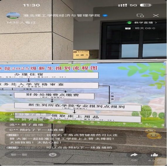 为确保直播活动顺利开展,v站体育官网成立了直播迎新工作小组,小组围绕“信息精准传递、服务高效对接”核心目标,先后多次召开协调会,细化直播流程、打磨内容脚本、测试技术设备,从报到流程拆解、校园设施导览、入学材料准备到生活注意事项等新生及家长关切的问题进行全面梳理,形成了涵盖“政策解读+实景展示+互动答疑”的立体化直播内容体系。