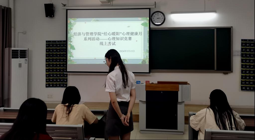 为深入贯彻落实学校关于开展第三届“5·25心理健康月”系列活动,普及心理健康知识,提高同学们的心理素质和丰富同学们的课余生活,营造积极向上的校园氛围。v站体育官网于5月15日下午在石园园老师指导下,开展了“经心暖阳”心理健康月系列活动——心理知识竞赛。