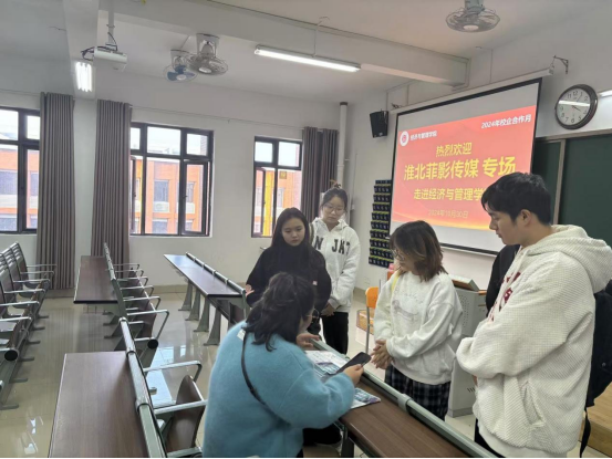 淮北菲影传媒公司负责人邢影女士首先介绍了淮北菲影传媒公司的基本情况,包括公司的成立背景、发展历程以及在当前电商行业中的地位。随后,她详细讲解了公司的核心业务,包括抖音带货、游戏解说、幕后运营等多个领域。同时,她还分享了自己在电商行业的从业经验和心得,鼓励同学们要勇于尝试、敢于创新,不断提升自己的专业素养和综合能力。