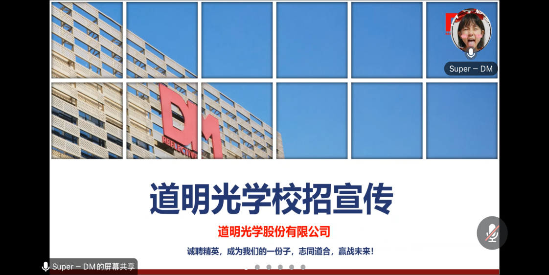 为进一步拓宽就业渠道、丰富学生的职业选择,积极推进2025届毕业生就业工作,v站体育官网于2024年12月6日成功举办了道明光学股份有限公司专场招聘会。本次活动通过腾讯会议线上举行,吸引了众多2025届毕业生参与,由道明光学股份有限公司市场部副经理梁志敏主讲。