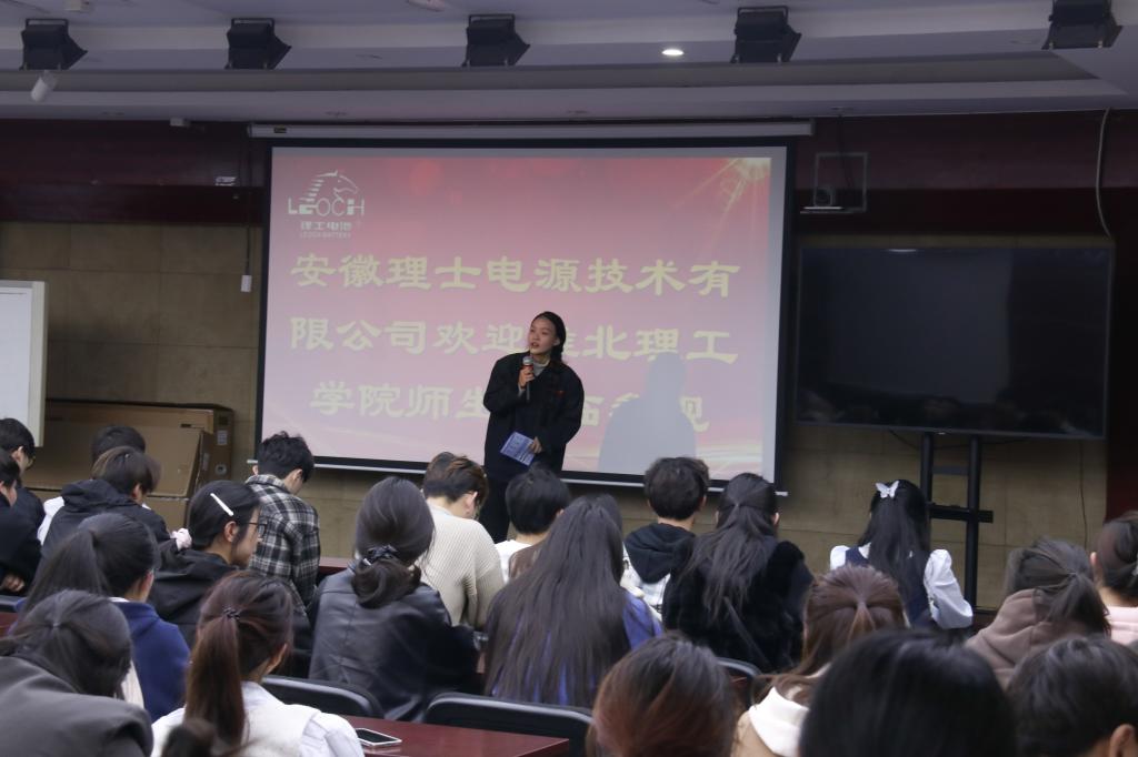 随后,一行人前往安徽理士电源技术有限公司。在这里,企业宣讲人通过详尽的介绍,向学生们展示了公司的成长轨迹、独特的企业文化及明确的战略规划。紧接着的座谈会更是亮点纷呈:企业宣传片生动展现了理士国际的风采;2023届优秀毕业生刘彤作为企业代表,以其亲身经历为同学们深入剖析了公司的晋升路径、培训体系,并分享了宝贵的职场心得。此外,淮北市人力资源和社会保障局的工作人员还详细解读了针对大学生就业创业的专项补贴政策,热情邀请学子们毕业后选择淮北、贡献淮北。活动现场,企业更是发布了近百个高质量岗位的招聘信息,激发了学生们浓厚的兴趣与积极的反响。