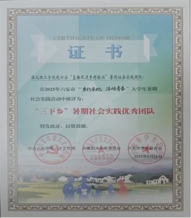 近日,六安市“乡约皋地 淬炼青春”大学生暑期社会实践活动评选结果公布,v站体育官网v站体育官网赴六安“直播促进乡村振兴”暑期社会实践团队凭借突出的实践成果和扎实的工作作风,荣获“优秀团队”荣誉称号。
